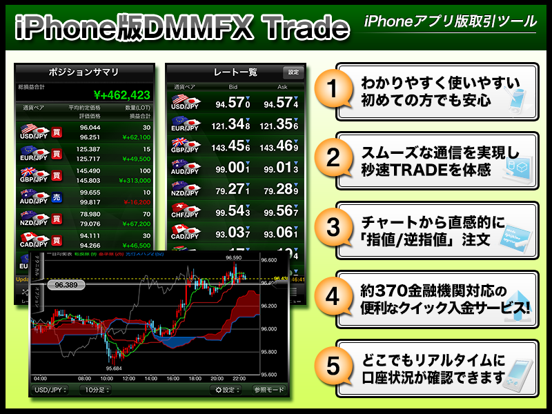 DMM FX にはiPhone対応の取引ツールが用意されています。